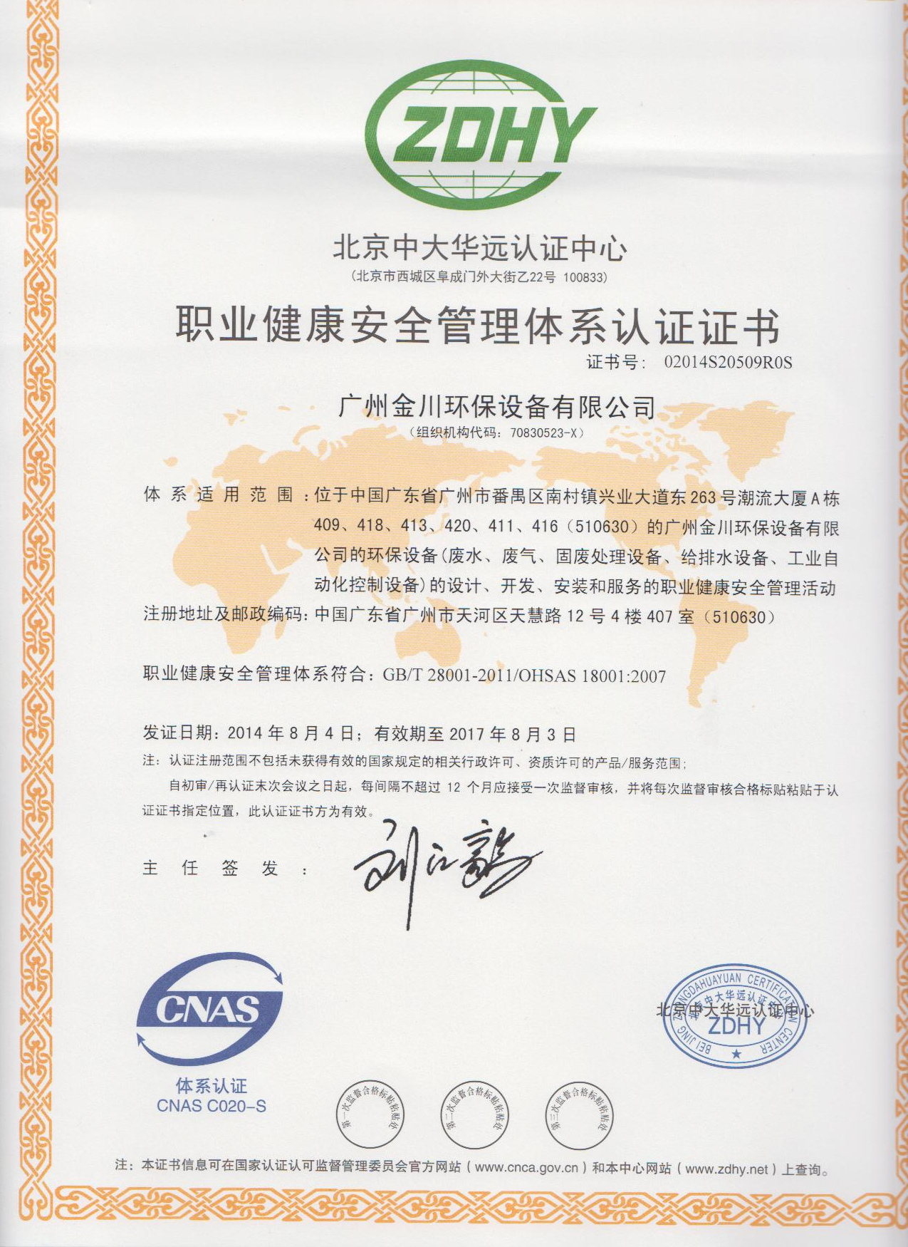 從2013年開始,公司開始著手認(rèn)證的準(zhǔn)備,經(jīng)過多次修訂和完善,最終在全體員工的共同努力下,經(jīng)過北京中大華遠(yuǎn)認(rèn)證中心的認(rèn)證審核,于2014年8月4日正式通過國家標(biāo)準(zhǔn)審核,并取得了職業(yè)健康安全管理體系兩項證書。